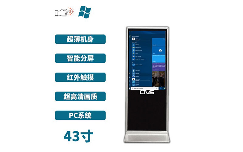 立式43寸紅外觸摸一體機pc版高清圖能夠根據(jù)用戶需求來選擇操控系統(tǒng)